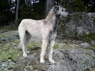 Direkt när vi hade kommit in i ridhuset kom en trevlig dam från USA fram till oss och sa att jag var en mycket vacker och stilig dam. Hon hade själv varghund och ville absolut veta från vilken kennel jag kom från. Matte spikade engelska med henne som om hon aldrig hade gjort annat..som sagt trevlig dam.. :-)
